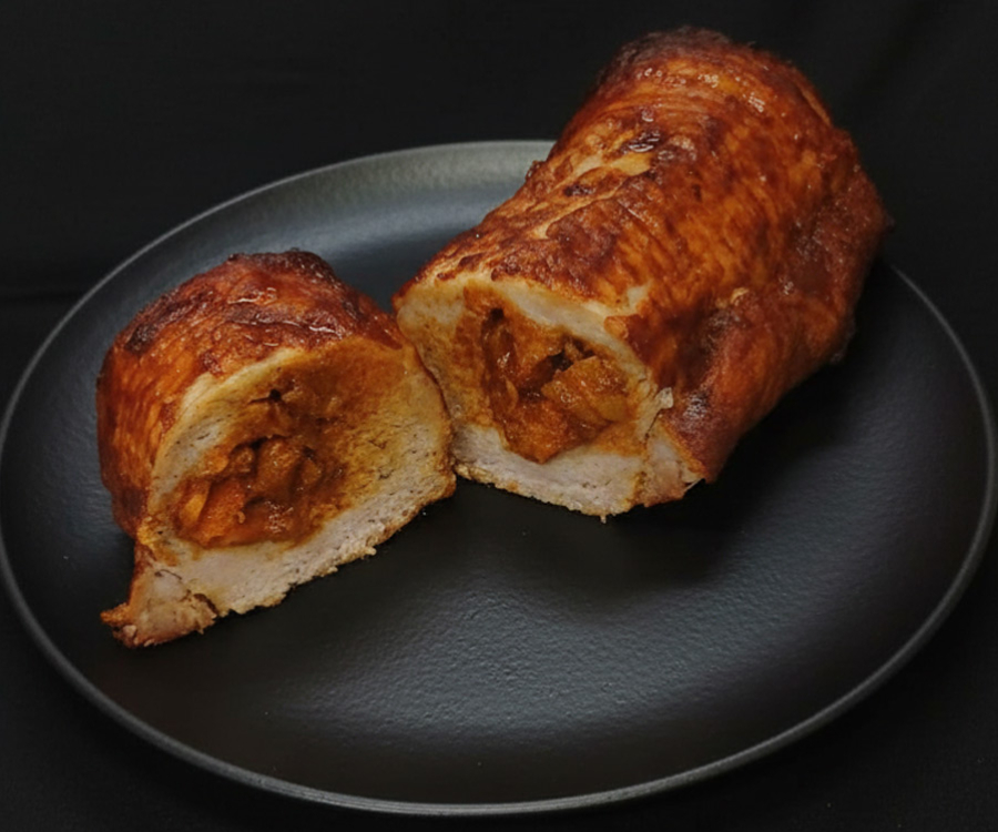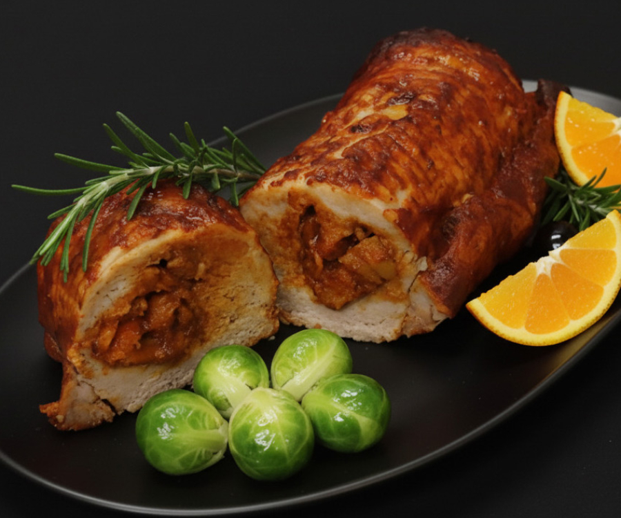 Un platillo jugoso y elegante, con un relleno dulce y crujiente que mezcla chabacano, frutos secos y almendras. Perfecto para sorprender con sabor y estilo.