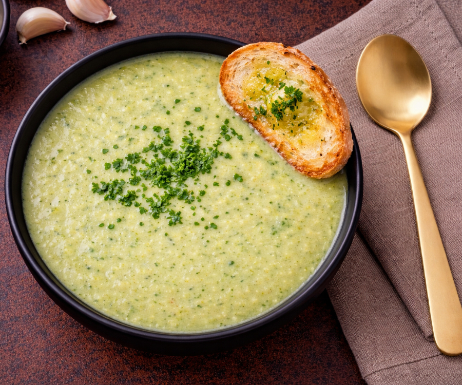 Crema suave, cremosa y exquisita, preparada con floretes de brócoli frescos, un toque de crema y especias que realzan su sabor natural. Ideal como entrada o acompañamiento.